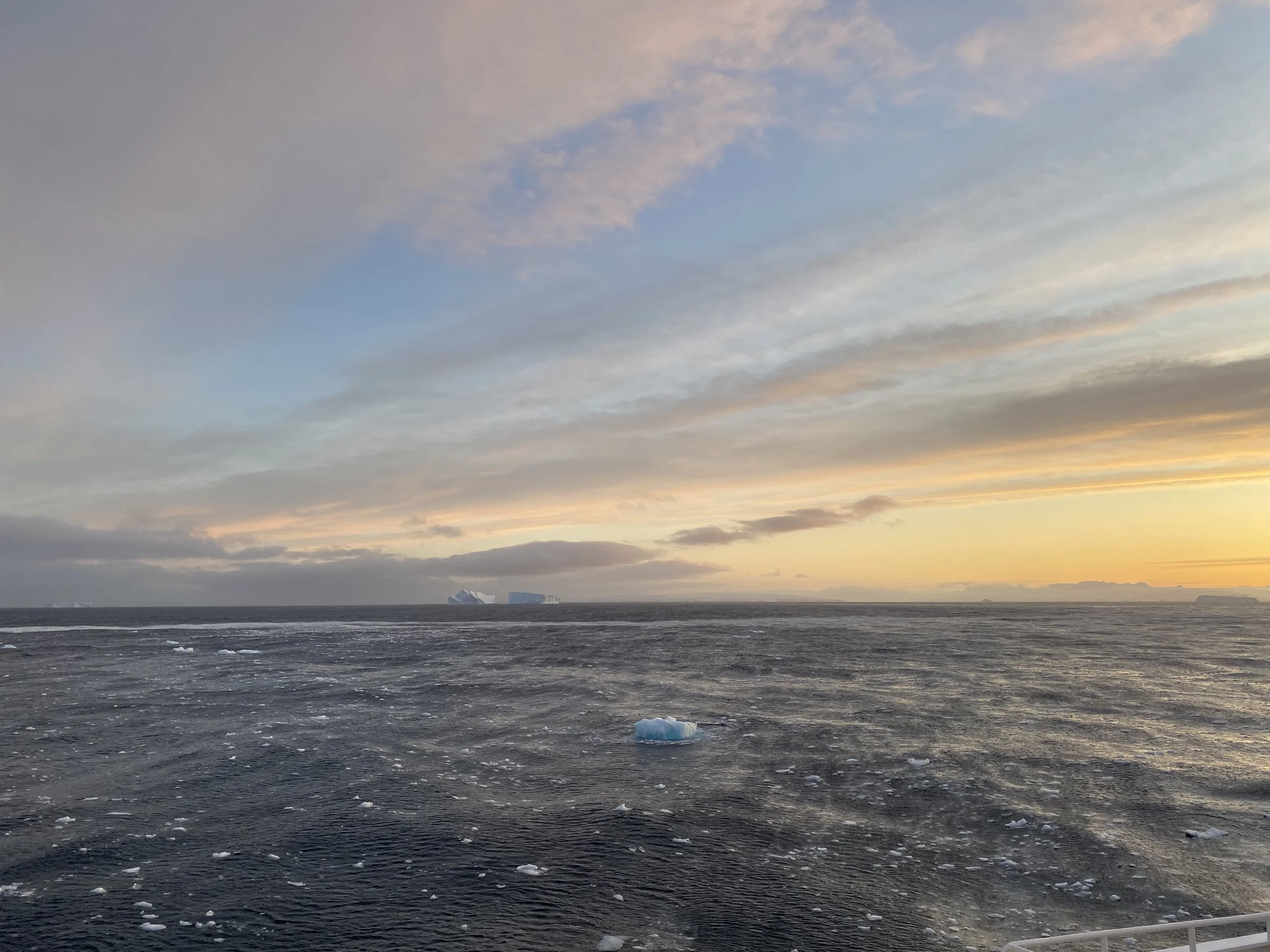 Here’s a fun fact. Despite being very close to the summer solstice (December 22), sunrise and sunset still exists this far south (this picture was taken at 63.5 degrees latitude). The Antarctic circle is at the 66.3 degrees parallel - the latitude at which all areas at or below will experience at least one full day of 24 hour sunlight at the summer solstice and at least one full day of 24 hour darkness at the winter solstice.